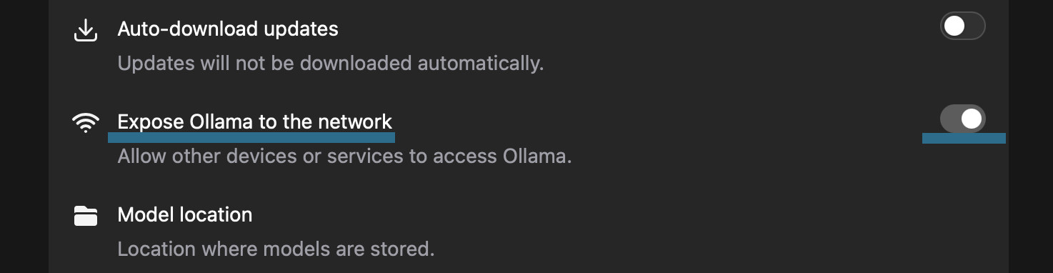 On Ollama you must go to "settings" and enable the allow network access to allow the model to communicate with external services.